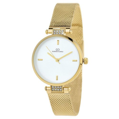 Montre femme ornée de Cristaux scintillantsLargeur cadran : 32mm - Hauteur cadran :32mm - Epaisseur : 8mmBracelet métal doré - Longueur : ajustable jusqu' à 20cm - Largeur : 14mm - Fermoir : ClipMatière : LaitonFinition : Plaquage haute résistanceVerre minéralMouvement Quartz haute fiabilité japonai