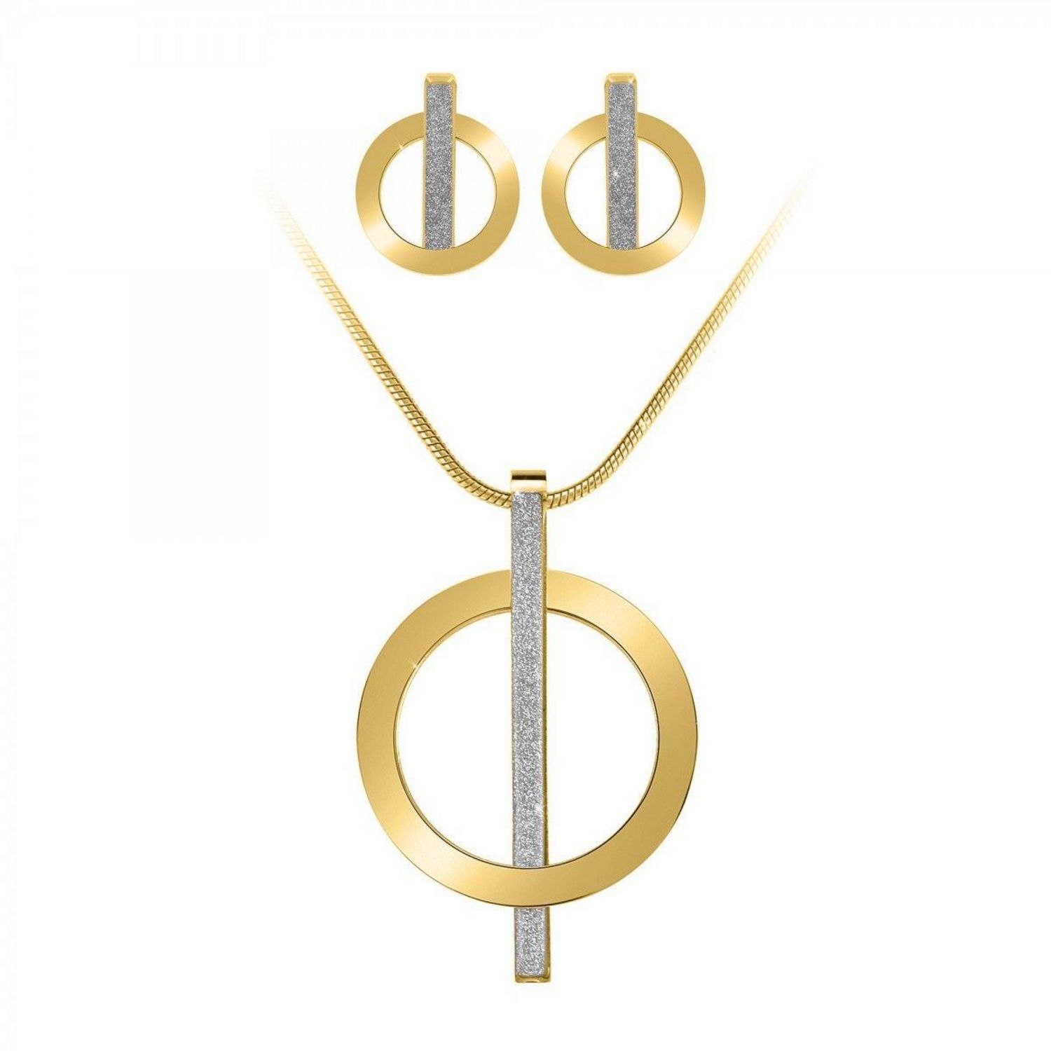 Parure par SC BohèmeOrnée de Cristaux scintillants.Acier inoxydable doré à l'or fin.Longueur collier : 42cm (+5cm de rallonge)Fermoir à mousqueton.Dimensions pendentif : 44 X 29mmEpaisseur pendentif : 9mmLongueur boucles d'oreilles : 6cmDimensions pendentif : 18 X 15mmEpaisseur pendentif : 5mmAttach