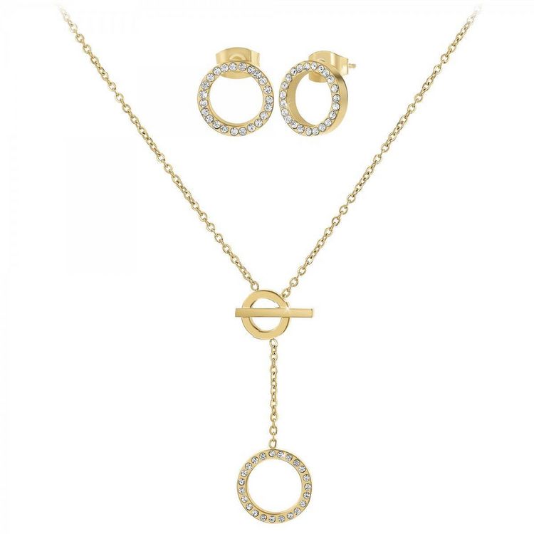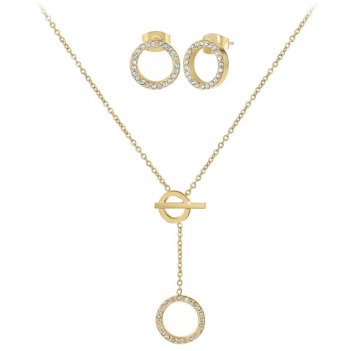 Parure par SC BohèmeOrnée de Cristaux scintillants.Acier inoxydable doré à l'or finLongueur collier : 44cmDimensions pendentif : 15x15mmFermoir : type passant.Dimensions boucles d'oreilles : 10x10mmAttache de type piercing.