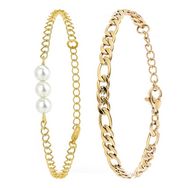 Bracelet SC Bohème® orné de perles et un bracelet modeBracelet SC Bohème® orné de perlesAlliage résistant doré à l'or fin.Dimensions perles : 6mm.Longueur bracelet : 17cm (+4cm de rallonge)Fermoir : mousquetonBracelet modeAcier inoxydable doré à l'or fin.Largeur maille : 5mmLongueur bracelet : 16cm