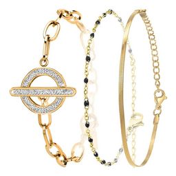 Bracelet SC Bohème® orné de cristauxAcier inoxydable doré à l'or finLongueur bracelet : 16cm (+4cm de rallonge)Largeur maillons : 6mmDimensions pendentif : 20x20mmFermoir : mousquetonBracelet modeDécoré de perles en résine.Acier inoxydable doré à l'or finLargeur perles : 1,2mmLongueur Bracelet : 17c