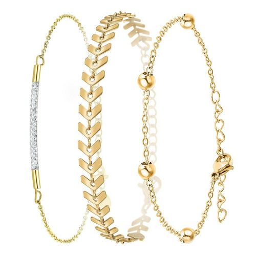 Bracelet SC Bohème® orné de cristaux et 2 bracelets modesBracelet SC Bohème® orné de cristauxAcier inoxydable doré à l'or finLongueur bracelet : 16cm (+ 3cm de rallonge)Hauteur pendentif : 2mmLargeur pendentif : 40mmFermoir : mousquetonBracelet modeAcier inoxydable doré à l'or finLongueur bracelet :