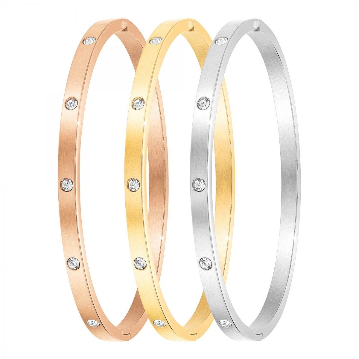 3 Bracelets en acier inoxydable SC Crystal ornés de Cristaux scintillants