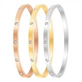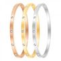Bracelets par SC CrystalOrnés de Cristaux scintillantsDiamètre : 60 mmAcier inoxydable. (garanti sans nickel)Caractérisé par son originalité pour enrichir votre beauté, ce trio de bracelets exprime de la vigueur et la vitalité de votre élégance. Ces 3 bracelets SC Crystal or rose-or-argent très faci