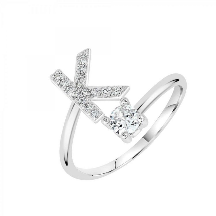 Bague lettre K ajustable SC Crystal ornée de Zirconium