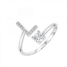 Bague lettre L ajustable SC Crystal ornée de Zirconium