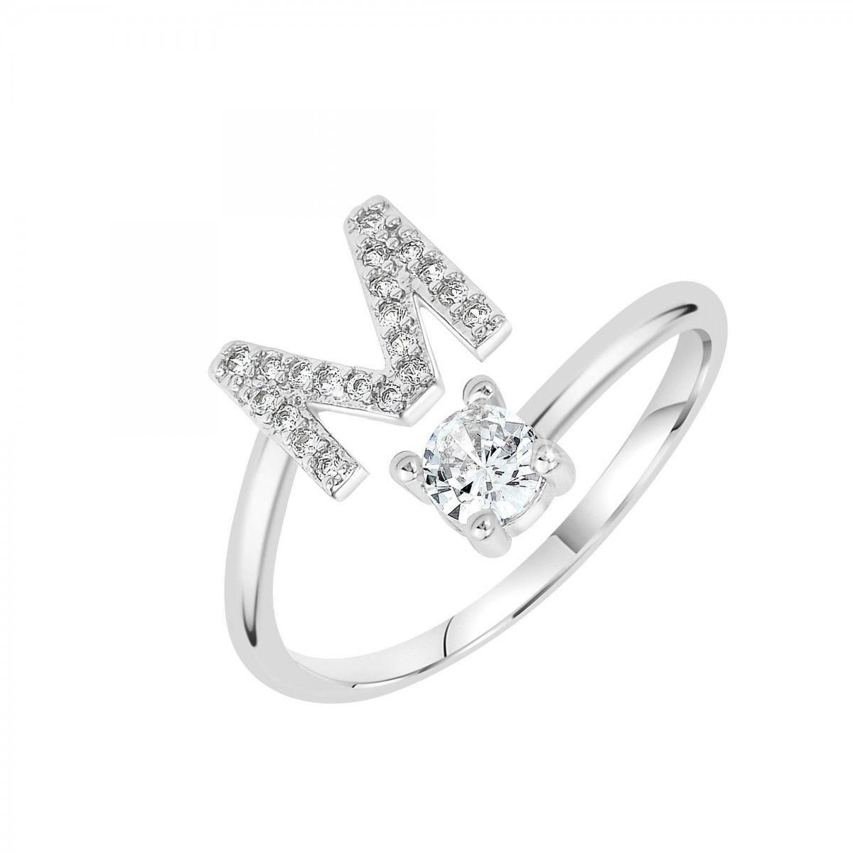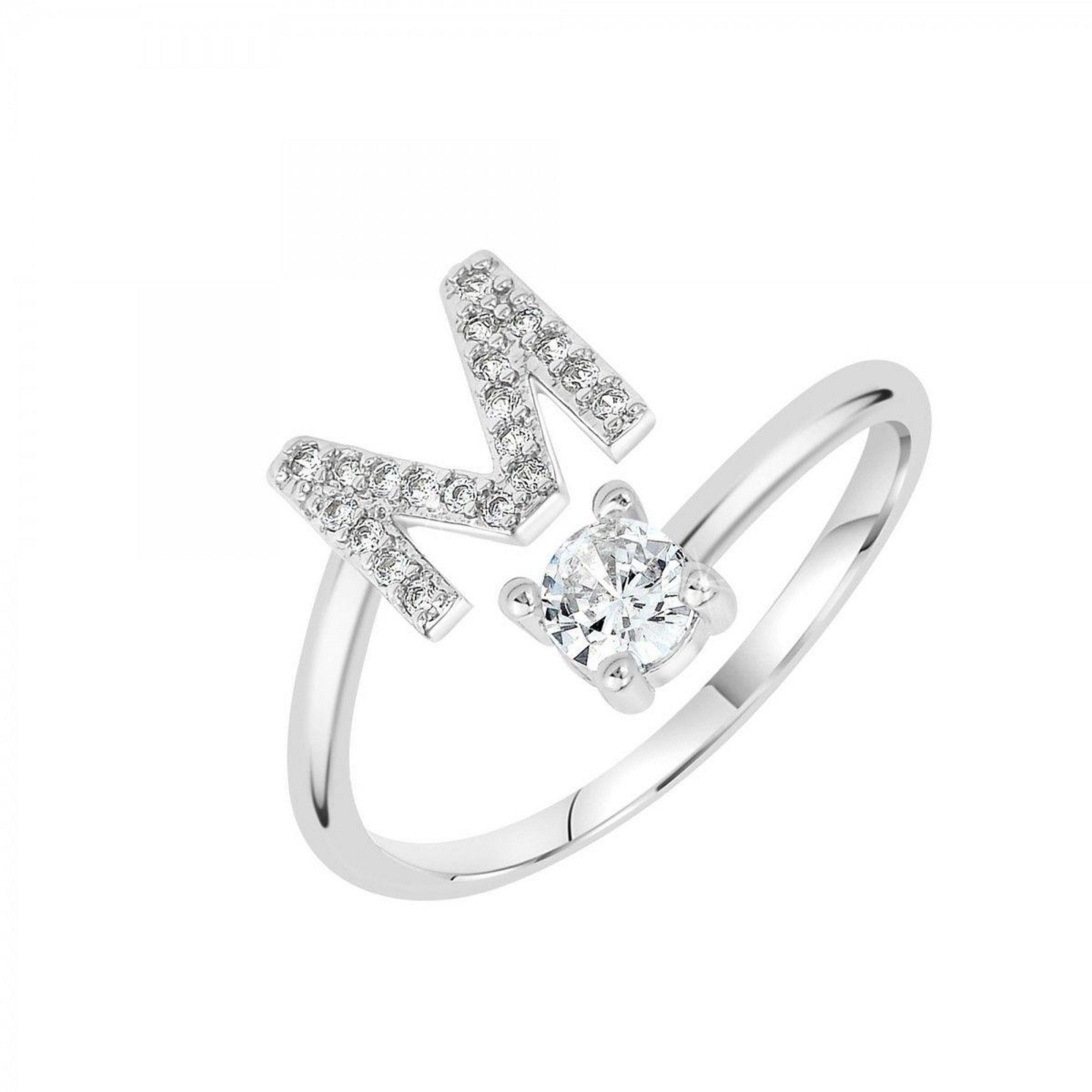 Bague lettre M ajustable SC Crystal ornée de Zirconium