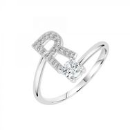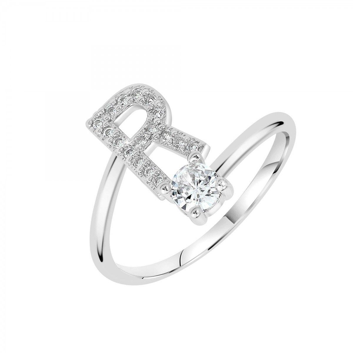 Bague lettre R ajustable SC Crystal ornée de Zirconium