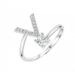 Bague lettre V ajustable SC Crystal ornée de Zirconium