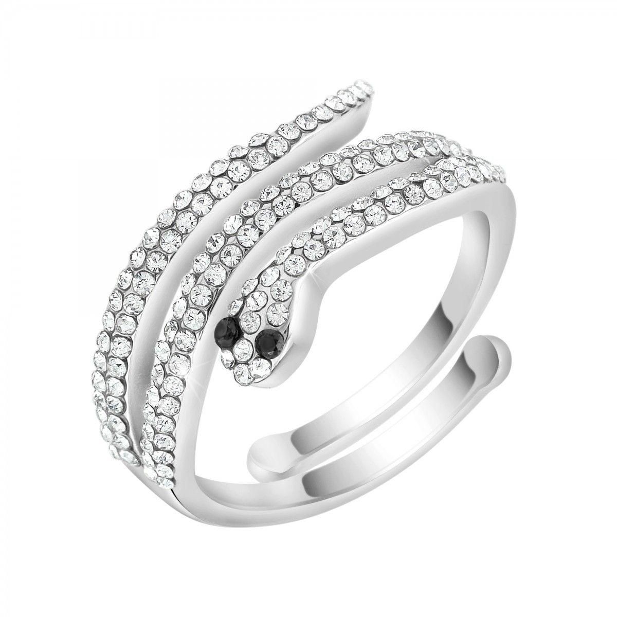 Bague serpent ajustable par SC Crystal ornée de deux véritables diamants noirs