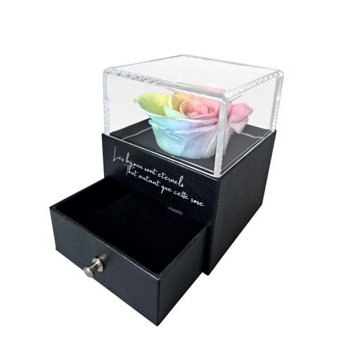 Boite à bijoux décorée d'une rose éternelle - stabilisée multicolore