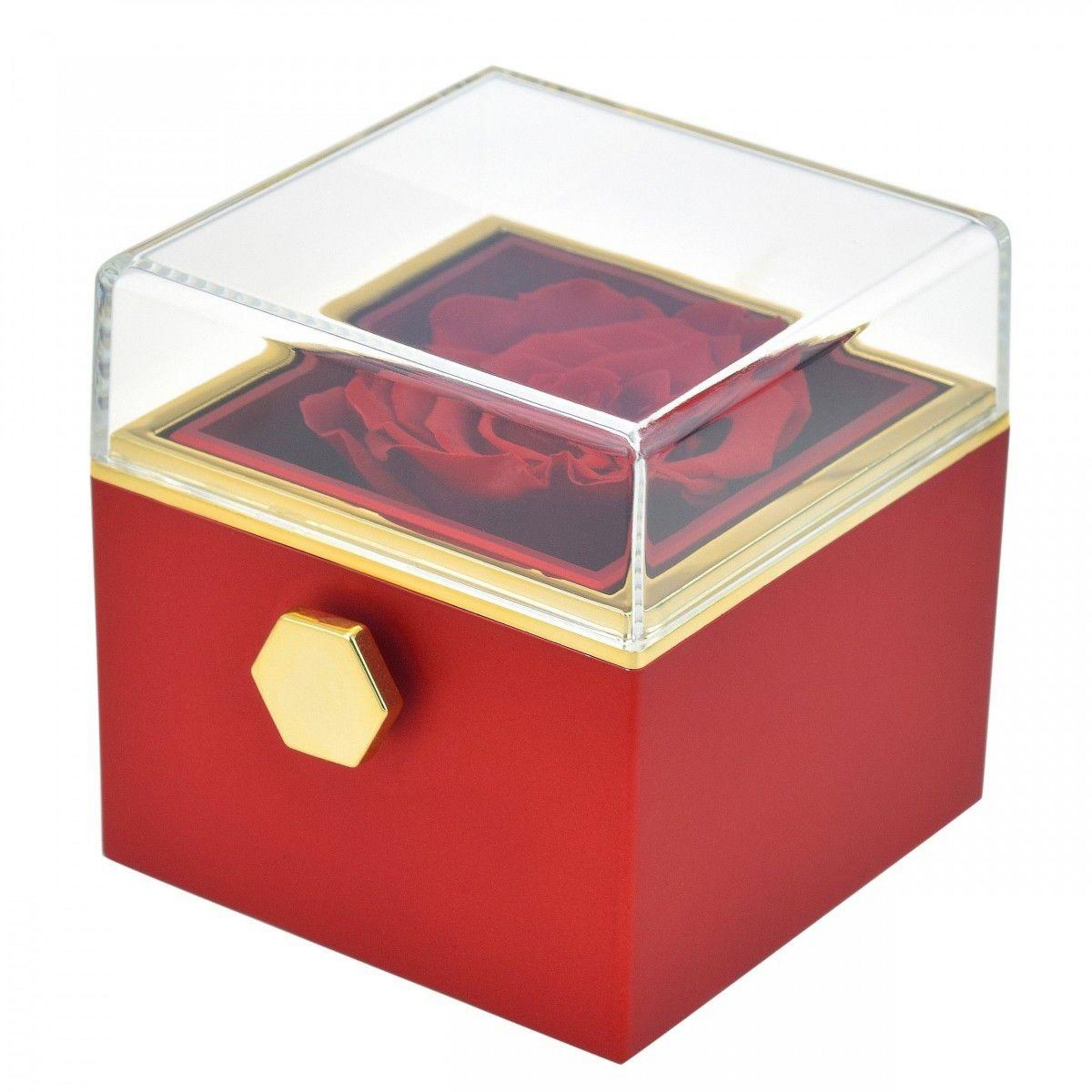 Boite à bijoux surprise décorée d'une rose éternelle - stabilisée rouge
