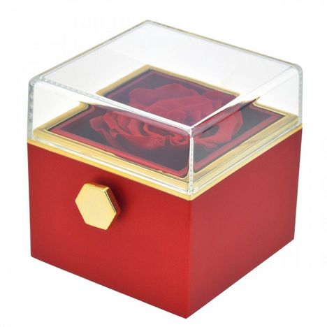 Cette boite à bijoux avec une rose éternelle naturelle est une œuvre artistique qui rend les cadeaux absolument uniques et magnifiques.En plus de proposer un compartiment pour y mettre un bijou, il s'agit d'une véritable décoration élégante et raffinée. Un cadeau idéal pour un anniversaire, la Saint