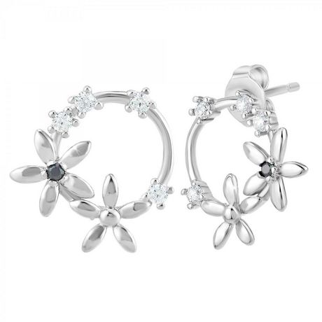 Boucles d'oreilles fleurs par SC Crystal ornées d'un véritable diamant noir