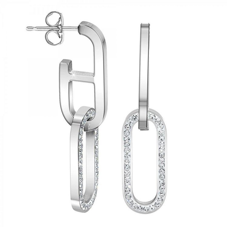 Boucles d'oreilles SC CrystalOrné de Cristaux scintillantsAcier inoxydable.Hauteur : 39mmLargeur : 9mmEpaisseur : 9mmAttache de type piercing.