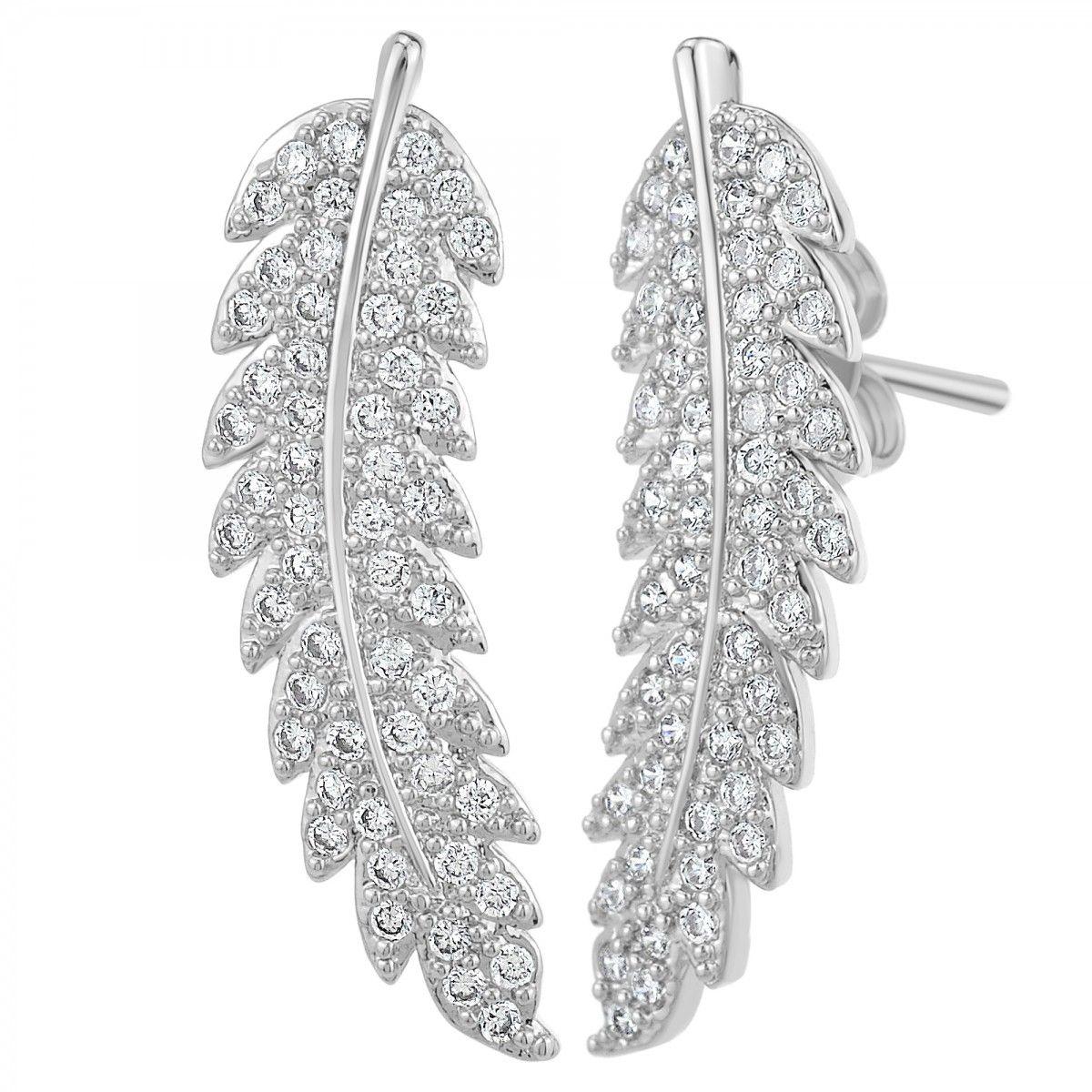 Boucles d'oreilles plumes SC Crystal ornées de Cristaux scintillants