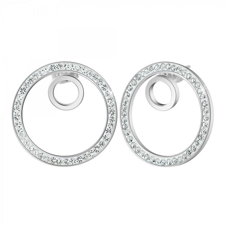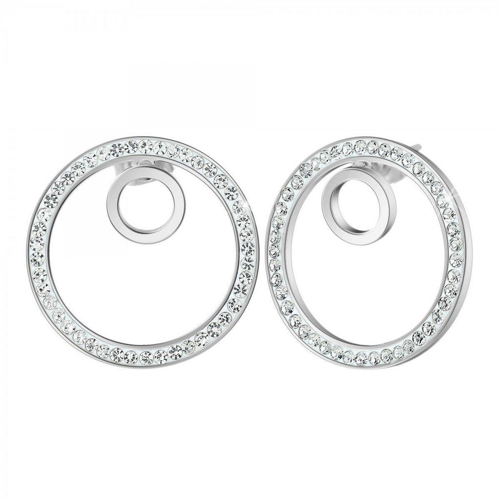 Boucles d'oreilles par SC CrystalOrnées de Cristaux scintillants.Acier inoxydable.Dimensions petit rond : 4x4mmDiamètre : 20x20mmAttache de type piercing.