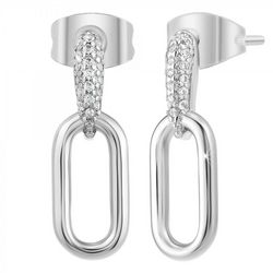 Boucles d'oreilles SC CrystalOrnées de Zirconium.Alliage résistant avec plaquage haute résistance.Hauteur totale : 17mmHauteur pendentif : 11mmLargeur pendentif : 6mmAttache de type piercing.