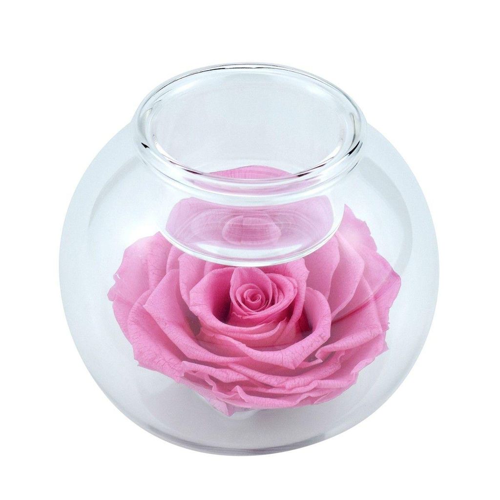 Bougeoir en verre décoré d'une rose éternelle - stabilisée rose