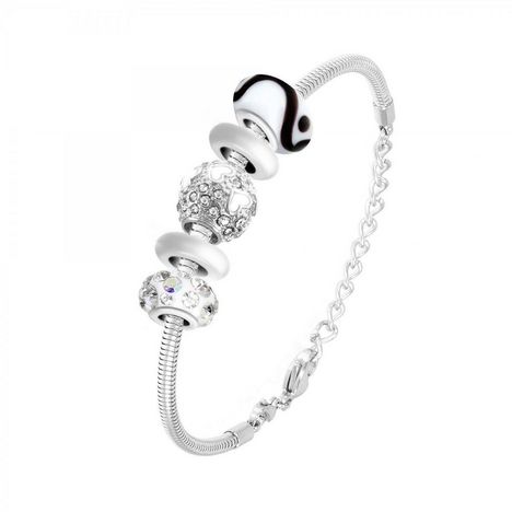 Bracelet de charms perles blancs et acier SC Crystal