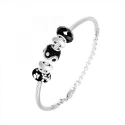 Bracelet de charms perles noirs et acier SC Crystal