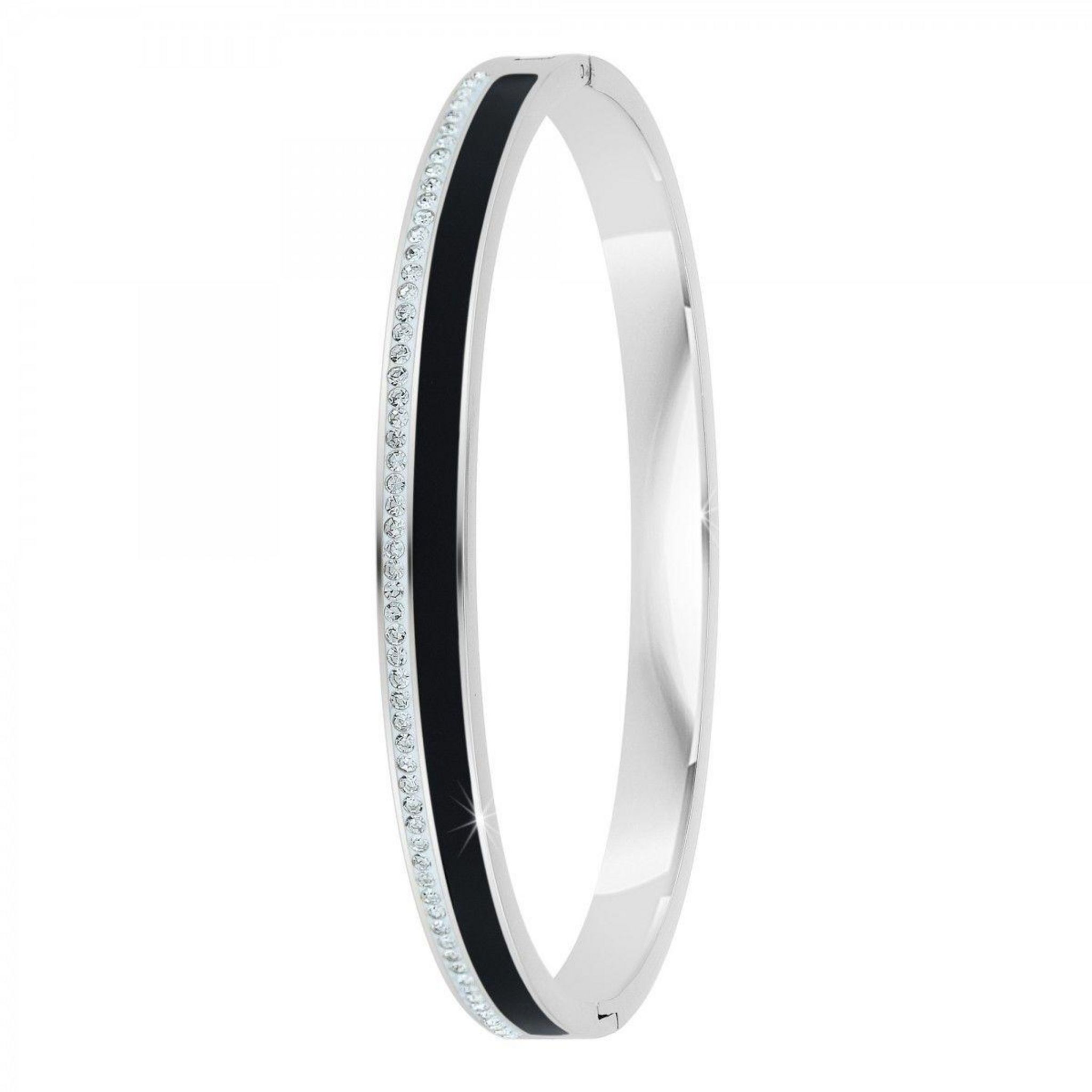 Bracelet SC Crystal.Orné de Cristaux scintillantsFinition en résine à haute résistance aux rayures.Acier inoxydable.Diamètre : 60x50mmLargeur : 6mmFermoir : A ouverture
