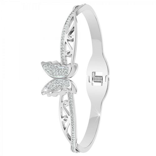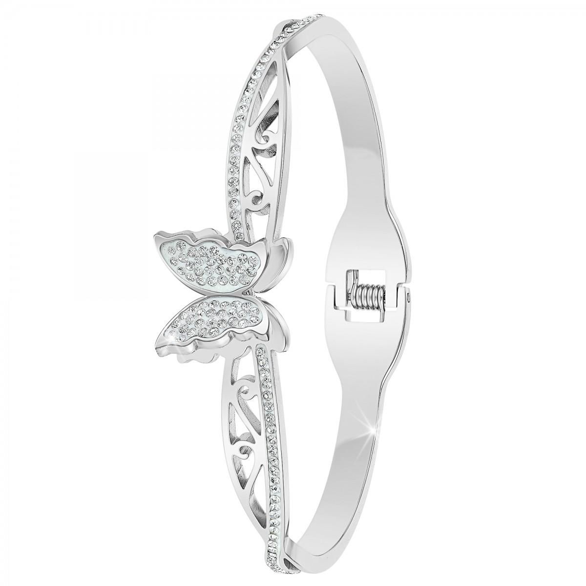 Bracelet SC CrystalOrné de Cristaux scintillants.Acier inoxydable.Hauteur bracelet : 7mmDimensions papillon : 13x13mmDiamètre : 60x50mmFermoir : à ouverture