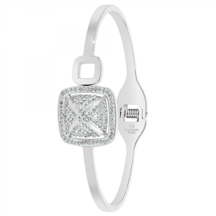 Bracelet SC CrystalOrné de Cristaux scintillants.Acier inoxydable.Hauteur bracelet : 3mmDimensions petit carré: 9x9mmDimensions grand carré : 18x18mmDiamètre : 60x50mmFermoir : à ouverture