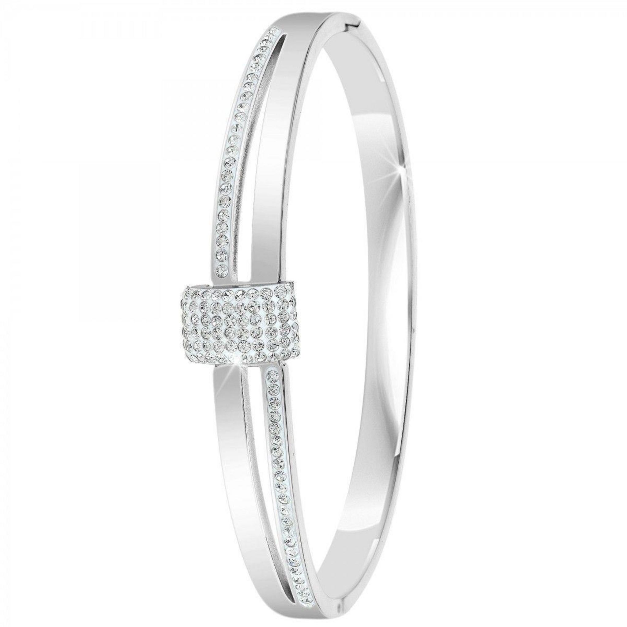 Bracelet SC CrystalOrné de Cristaux scintillants.Acier inoxydable.Hauteur bracelet : 7mmDimensions pendentif : 12x8mmDiamètre : 60x50mmFermoir : clip