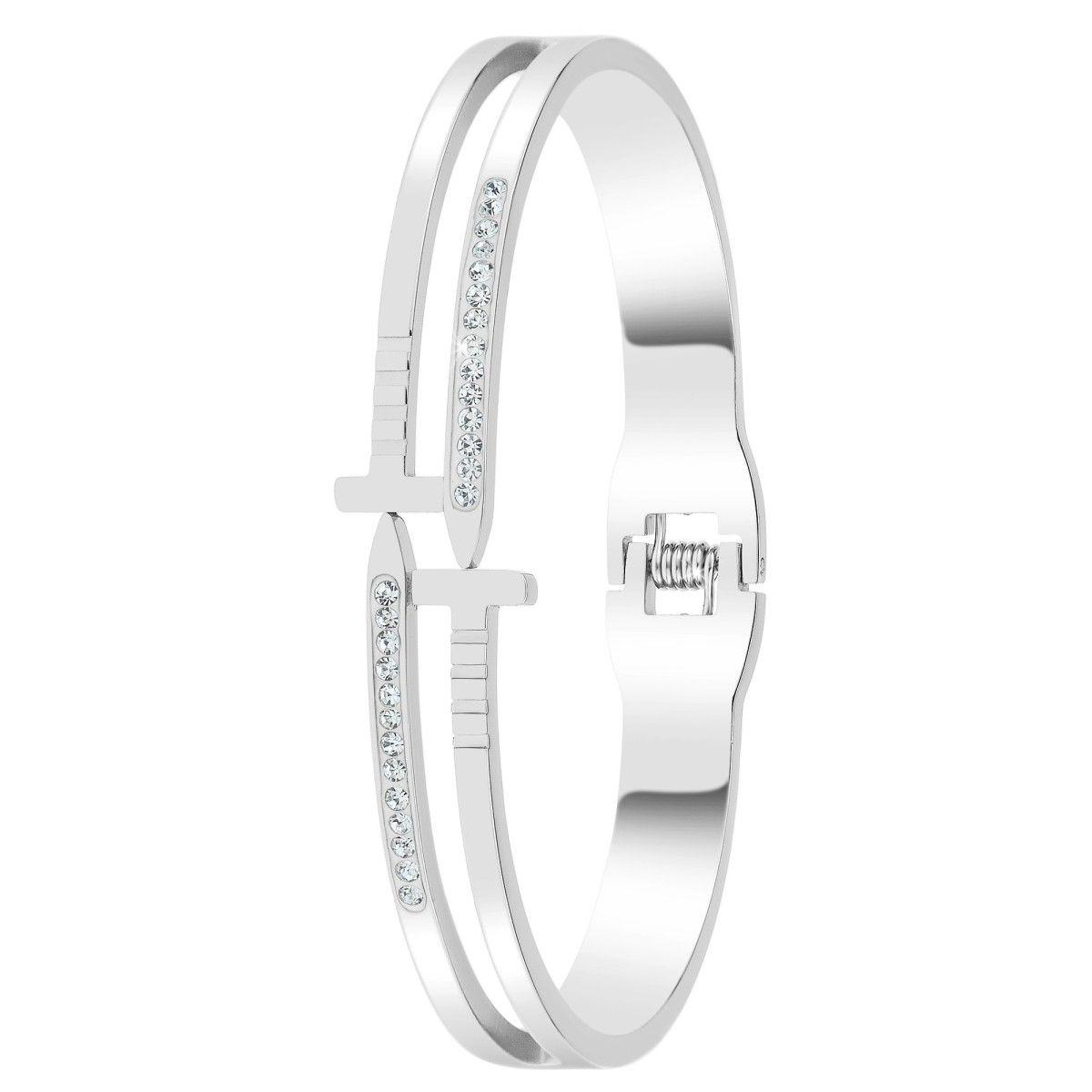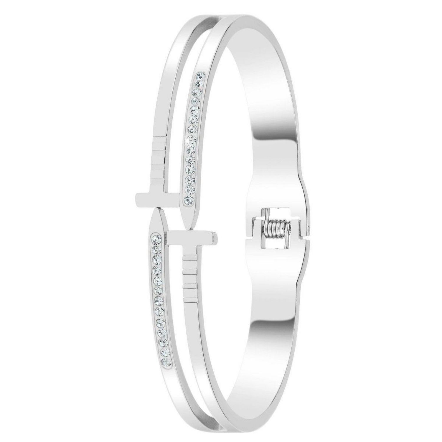 Bracelet SC CrystalOrné de Cristaux scintillants.Acier inoxydableDiamètre : 60x50mmLargeur : 9mmFermoir : à ouverture