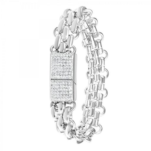 Bracelet SC CrystalOrné de Cristaux scintillantsAcier inoxydableLongueur : 16cmHauteur pendentif : 14mmLargeur pendentif : 24mmEpaisseur : 10mmFermoir : aimant