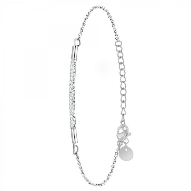 Bracelet par SC Crystal.Orné de Cristaux scintillants.Acier inoxydable.Longueur bracelet : 16cm (+ 3cm de rallonge)Hauteur pendentif : 2mmLargeur pendentif : 40mmFermoir : mousqueton