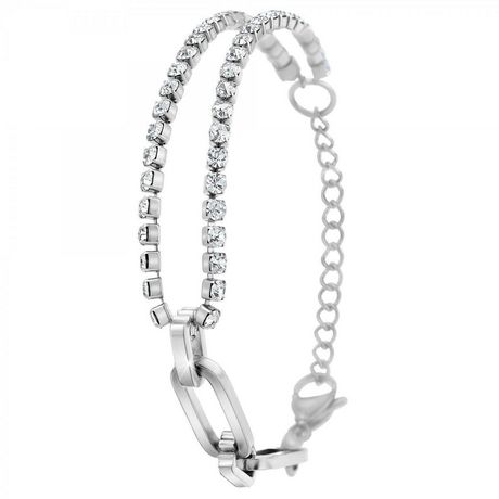 Bracelet par SC Crystal.Orné de Zirconium.Acier inoxydable.Longueur bracelet : 16cm (+5cm de rallonge)Dimensions strass: 3x3mmLargeur maille : 8mmFermoir : mousqueton.