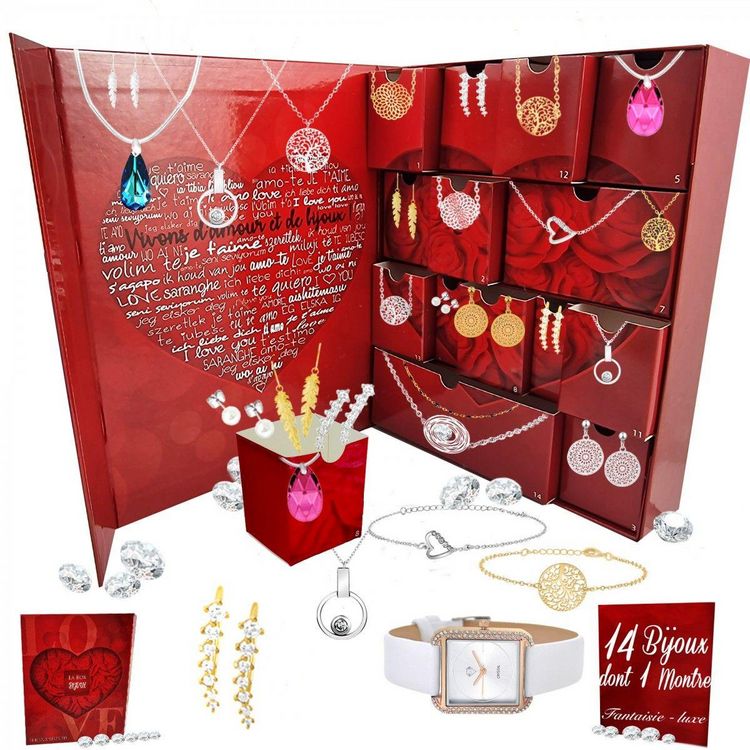 Car derrière chacune des 14 boîtes se trouvent 13 bijoux et 1 montre pour permettre d'étinceler et de rendre toujours plus élégante la destinataire de ce merveilleux cadeau.