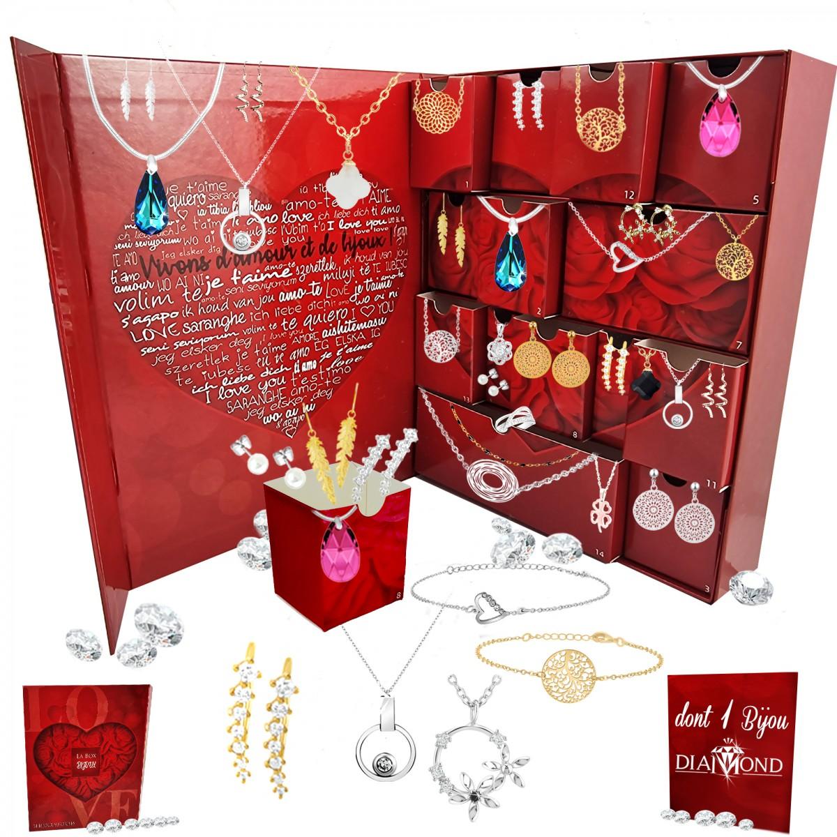 Chaque Coffret cadeau est unique par sa composition car composé de 14 bijoux qui combleront la destinataire de ce magnifique cadeau.