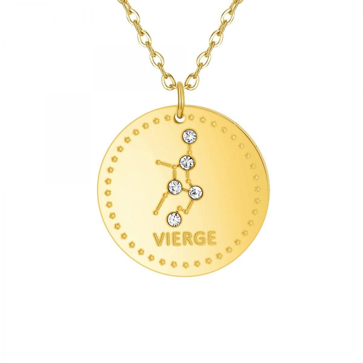 Collier astrologie Vierge SC Crystal orné de Cristaux scintillants en Acier Finement doré