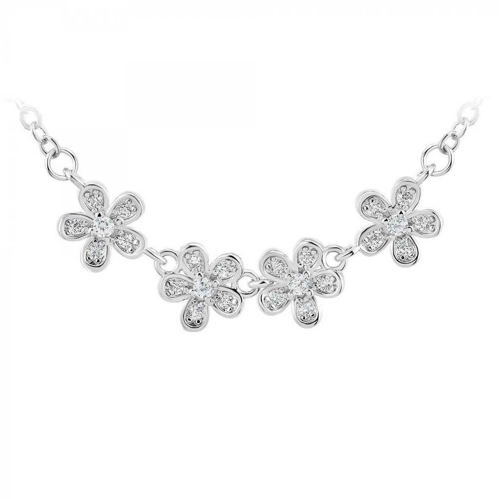 Collier SC Crystal.Orné de Zirconium.Alliage résistant avec plaquage haute résistance.Dimensions fleurs : 8 x 8mmLongueur collier : 44cm (+4cm de rallonge)Fermoir à mousqueton.