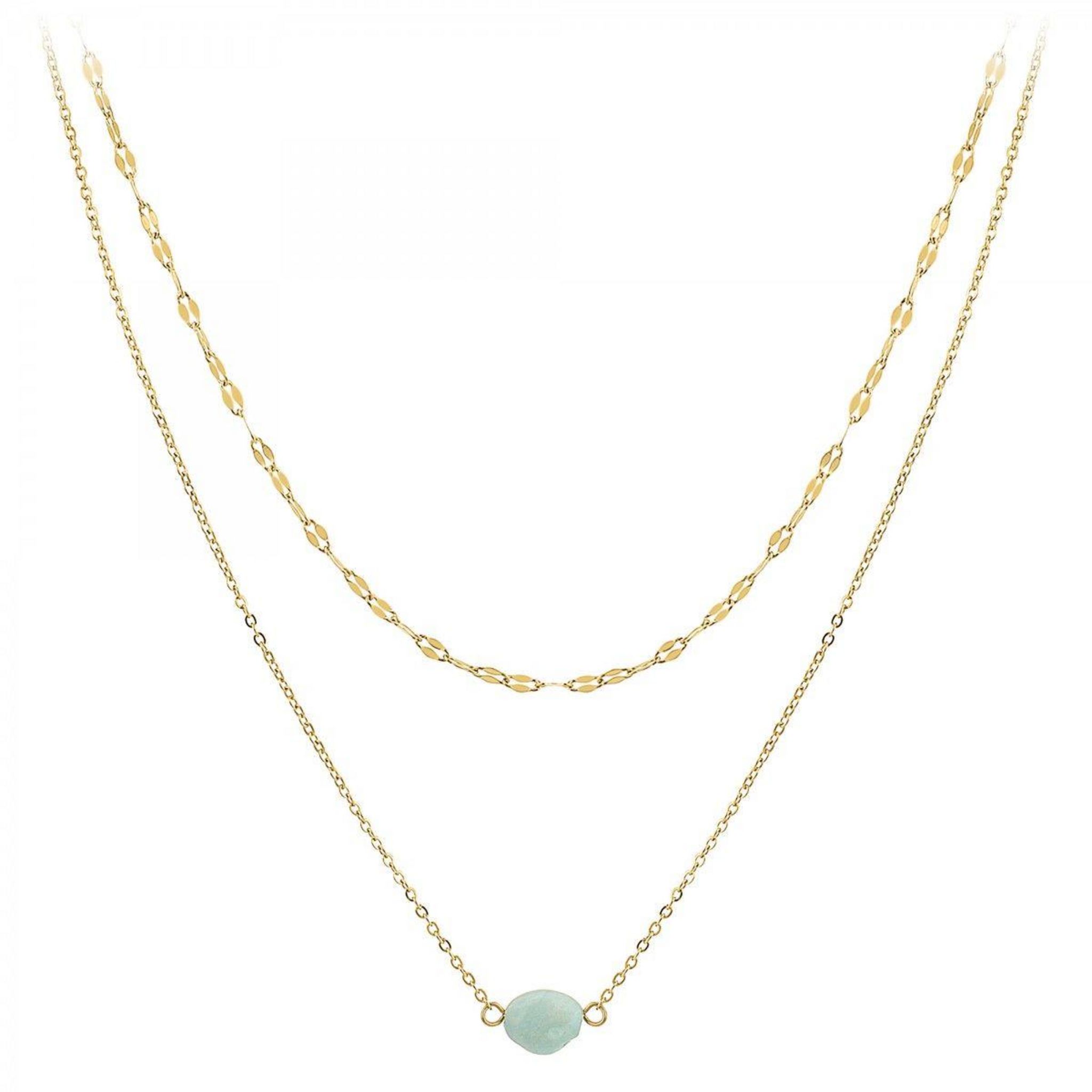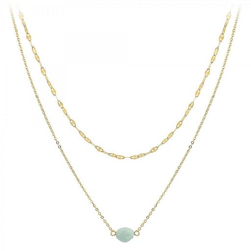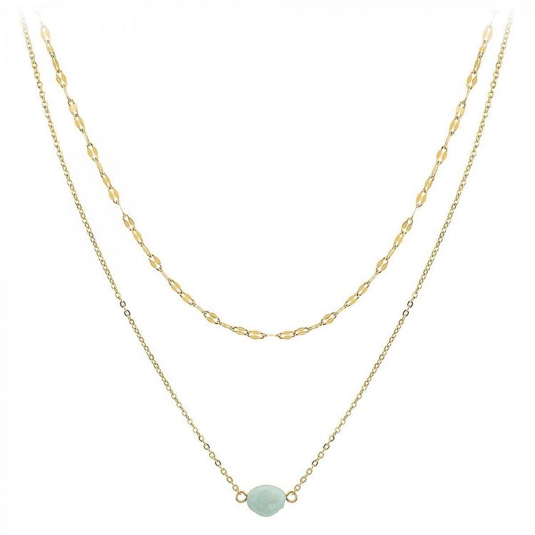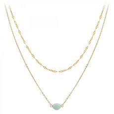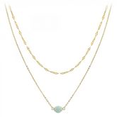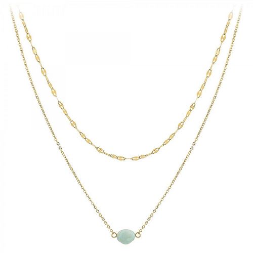 Collier SC Crystal orné d'une amazonitePierre naturelleAcier inoxydable doré à l'or fin.Dimensions pierre : 8x6mmLongueur collier : 40cm (+5cm de rallonge)Fermoir à mousqueton.Chaque perle est unique, peut présenter de légères irrégularités et variation de couleur.