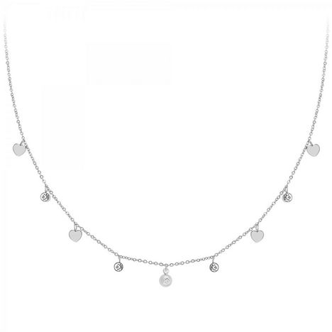 Collier SC CrystalOrné d'un véritable diamant et de Zirconium.Diamant rond 58 facettes (0.01 carats)Acier inoxydable.Longueur collier : 41cm (+5cm de rallonge)Dimensions pendentifs : 15x5x2mmDimensions pendentif diamant : 4x4mmFermoir : mousqueton.