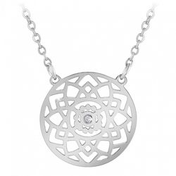 Collier par SC Crystal.Orné d'un véritable diamant blanc.Diamant rond 58 facettes (0.01 carats)Acier inoxydable.Longueur collier : 43cm (+5cm de rallonge)Dimensions pendentif : 18x18mmFermoir à mousqueton.