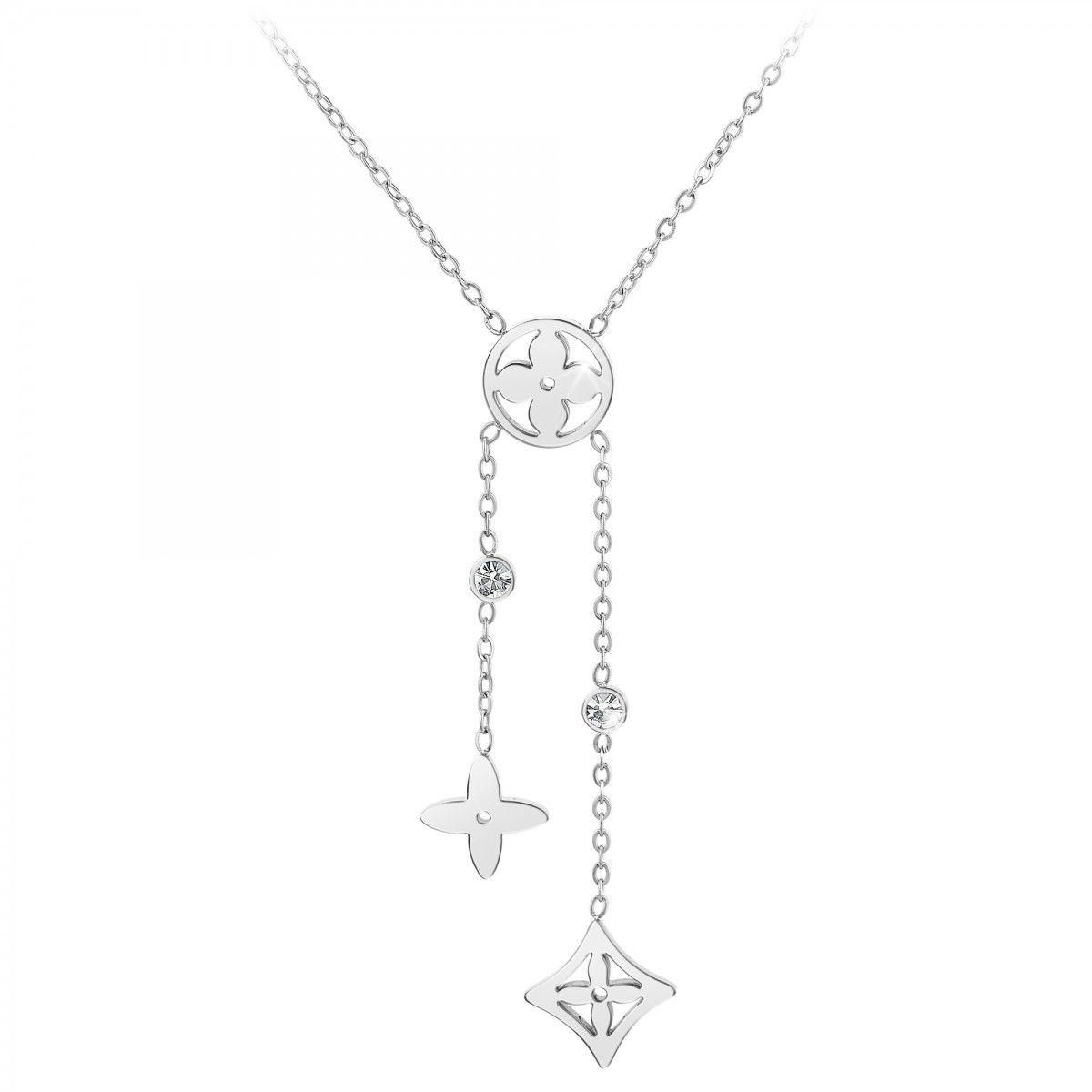 Collier SC CrystalOrné de Cristaux scintillants.Acier inoxydable.Hauteur totale pendentif : 58mmDimensions rond : 10x10mmDimensions losange : 12x12mmDimensions croix : 10x10mmDimensions strass : 3x3mmLongueur : 42cm (+ 5cm de rallonge)Fermoir : mousqueton