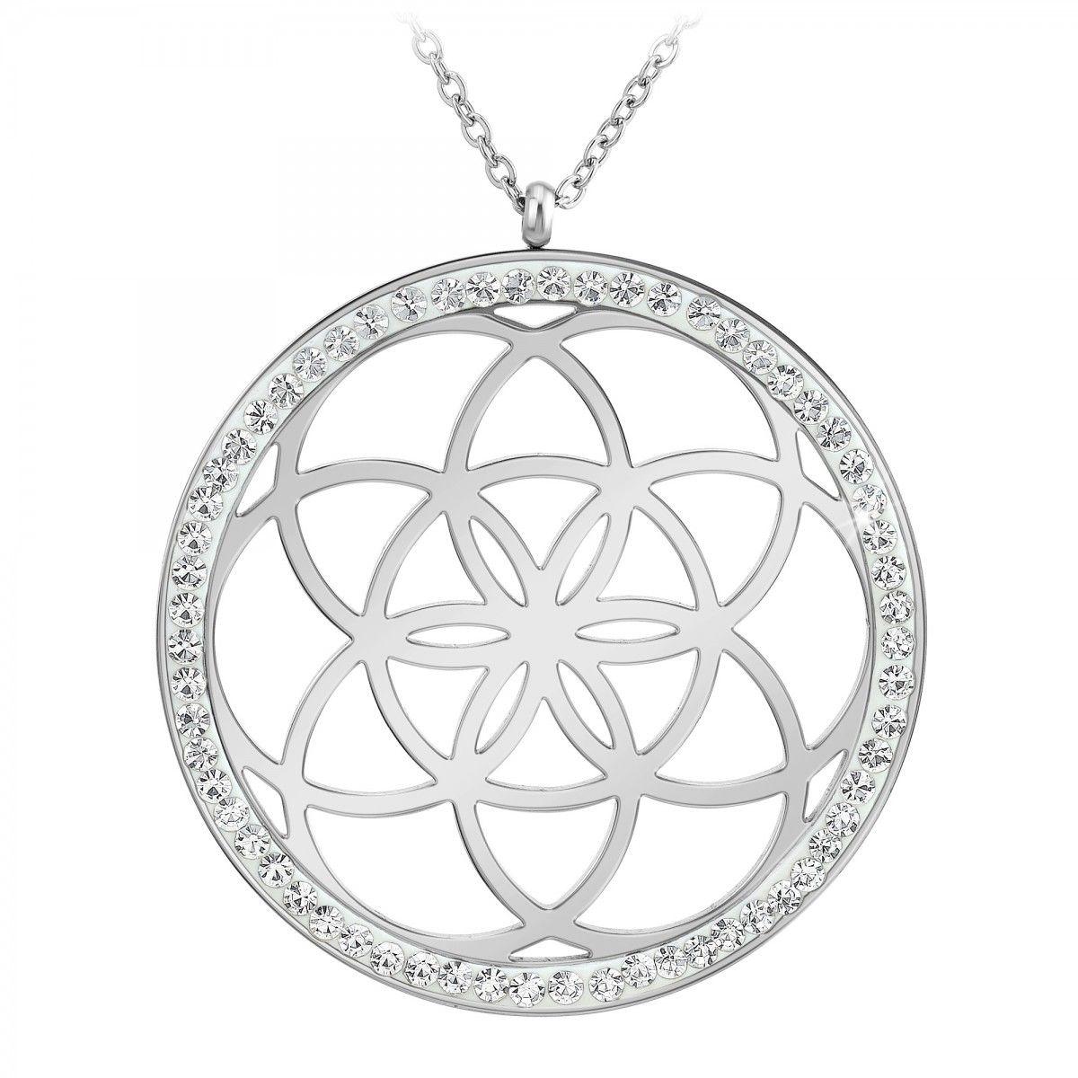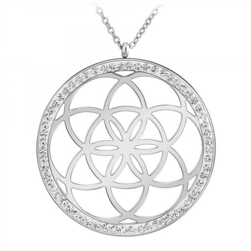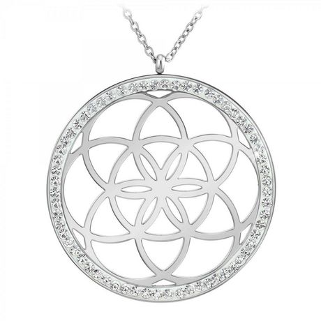 Collier par SC Crystal.Orné de Cristaux scintillants.Acier inoxydable.Longueur collier : 45cm (+5cm de rallonge)Dimensions pendentifs : 40x40mmFermoir à mousqueton.