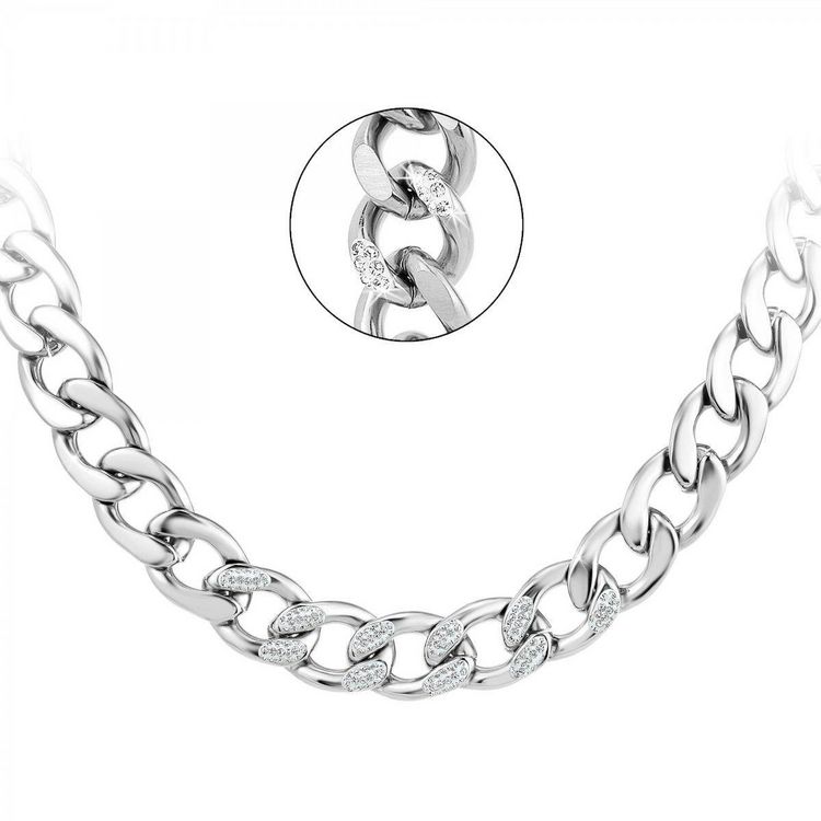 Collier SC CrystalOrné de Cristaux scintillants.Acier inoxydable.Largeur maille : 14mmLongueur : 45cm (+ 7cm de rallonge)Fermoir : mousqueton