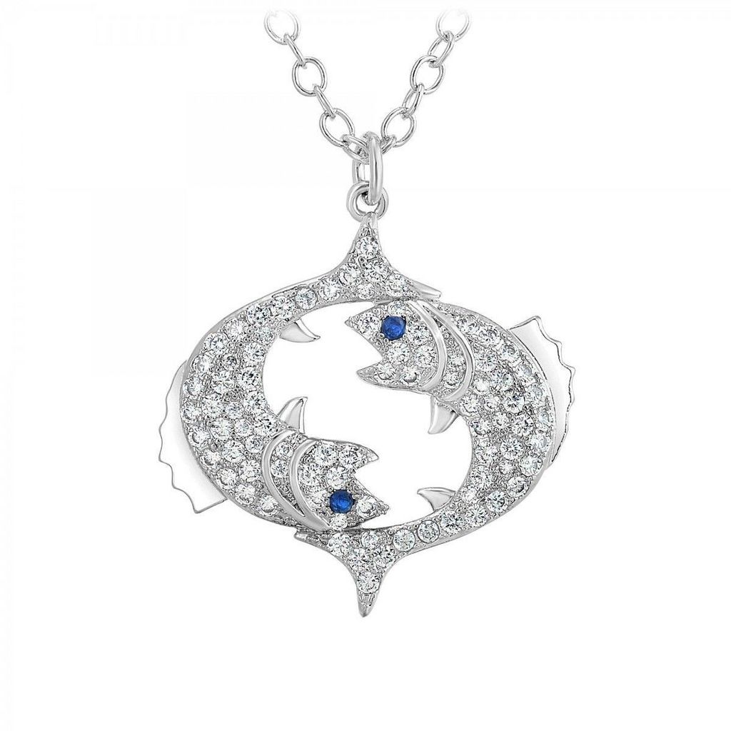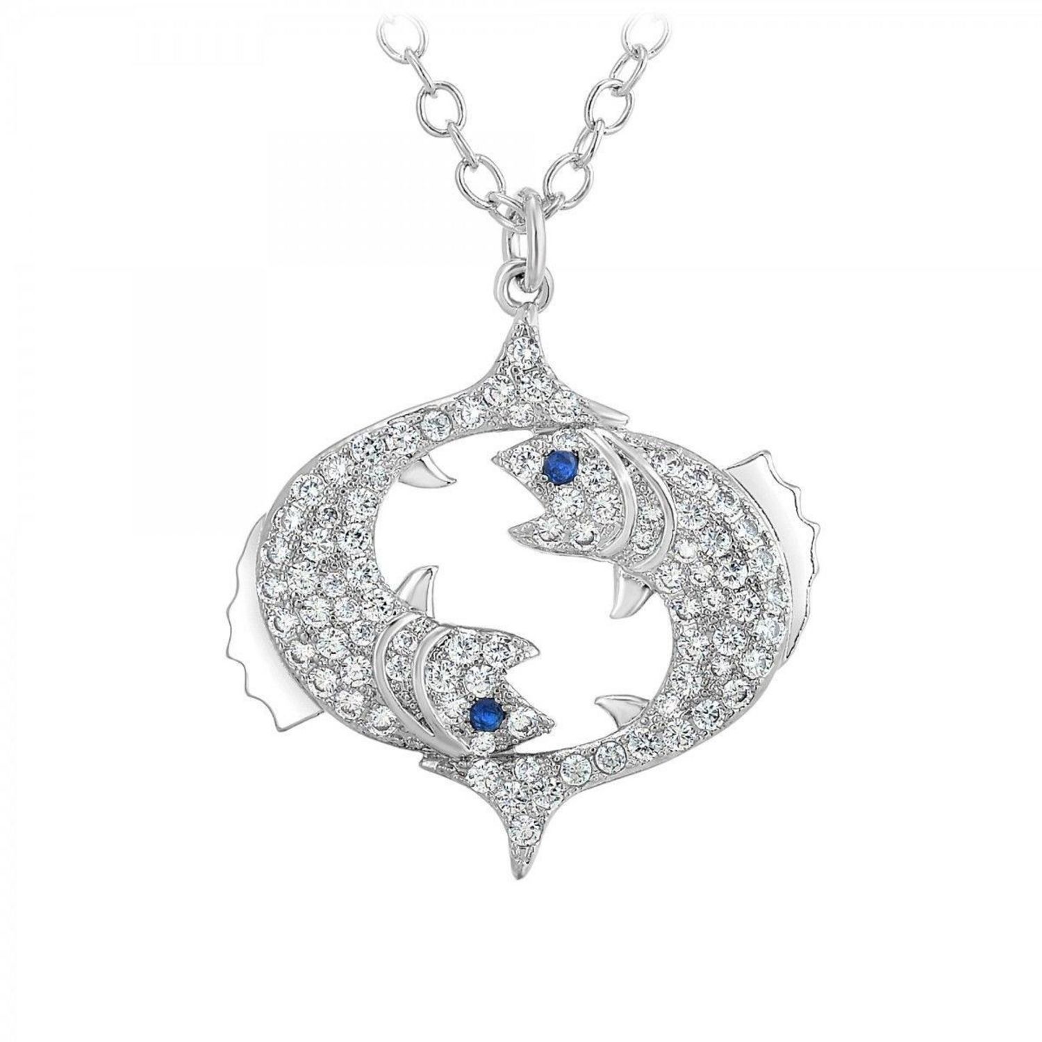 Collier signe astrologique poisson orné de Cristaux scintillants par SC Crystal en Métal rhodié