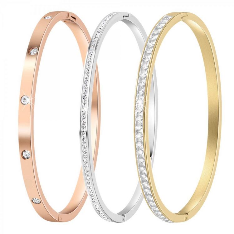 Bracelets par SC CrystalOrnés de Cristaux ScintillantsAcier inoxydableDiamètre : 60mmLargeur bracelet doré et orrose : 4mmLargeur bracelet argent : 3mmFermoir : clip