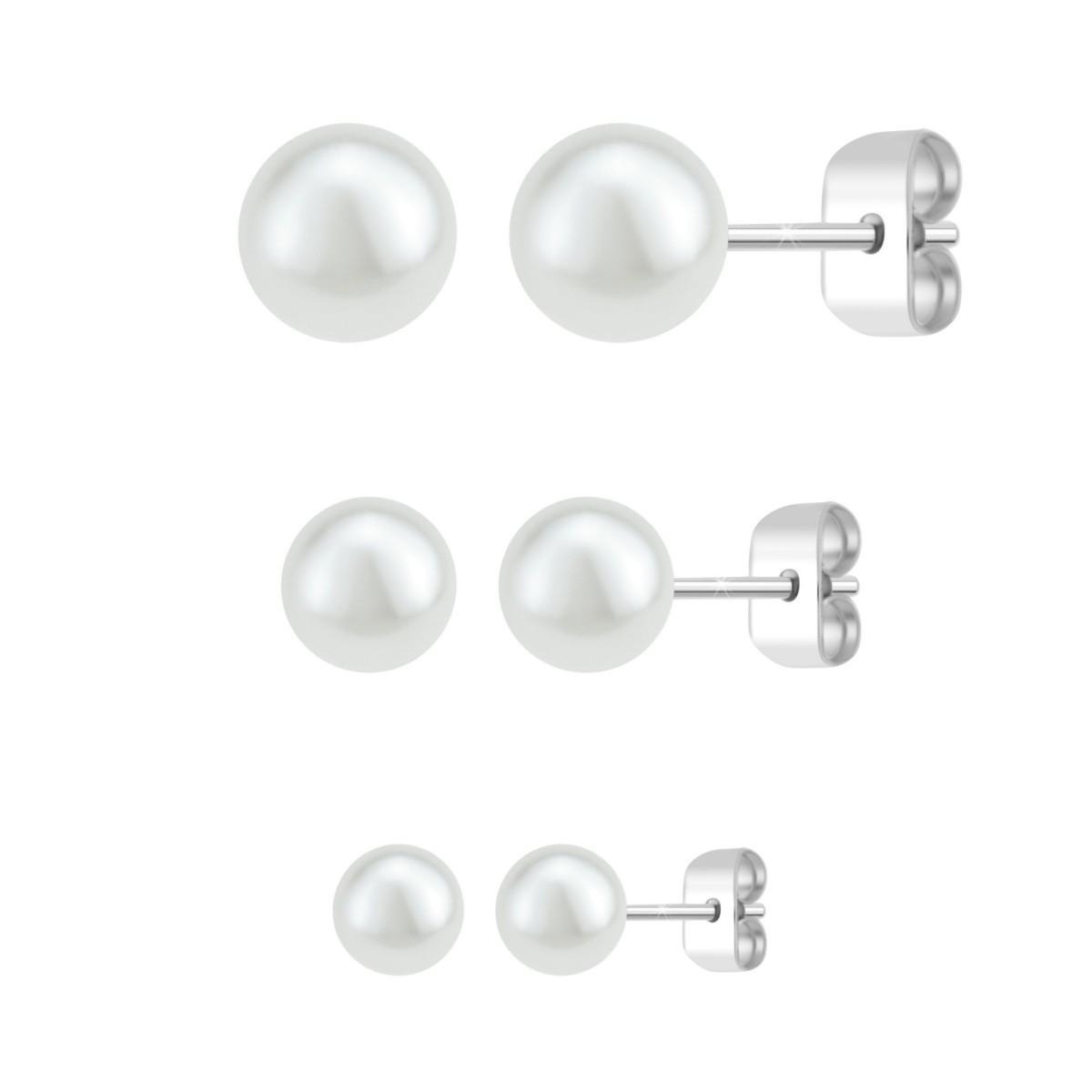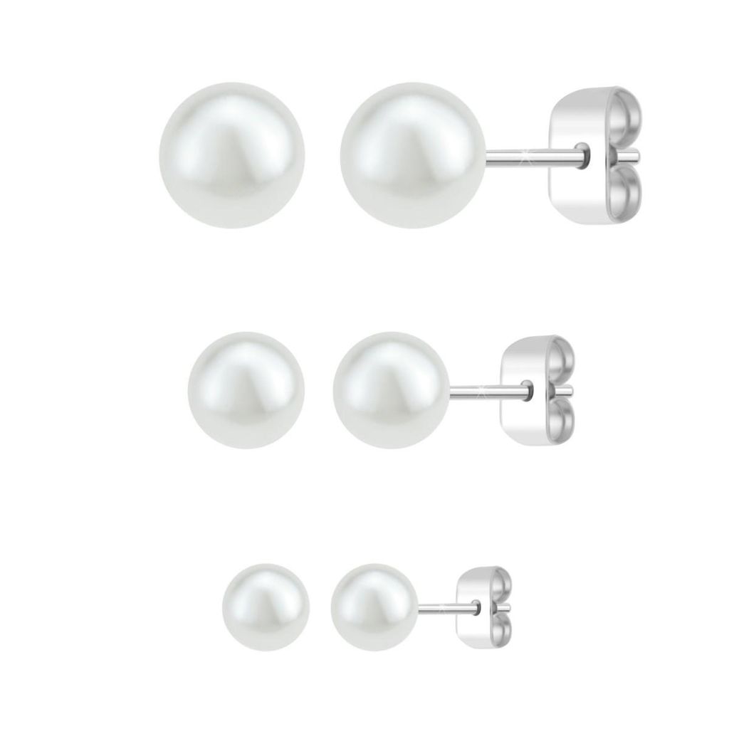 Boucles d'oreilles par SC CrystalOrnées de perlesAlliage résistant avec plaquage haute résistance.Grandes boucles d'oreilles :Dimensions perle : 6mmMoyennes boucles d'oreilles :Dimensions perle : 5mmPetites boucles d'oreilles :Dimensions perle : 4mmFermoir : type piercing