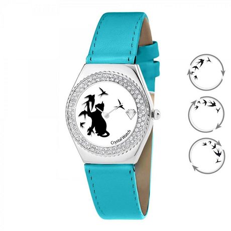 Complétez votre look avec la montre Alysson chat à mouvement tournant de notre marque. Elle est arborée d'un boîtier de conception altique en acier inoxydable, d'un cadran orné de brillants 87 Cristaux scintillants et d'un bracelet en véritable cuir bleu. Le mouvement des secondes en forme d'oiseaux noirs tournant autour du cadran rehausse à la perfection l'éclat chic de cette montre tendance et moderne avec une dose d'élégance féminine qui va parfaitement sur toutes les tenues. Agrémentée d'un mouvement quartz haute fiabilité et d'un bracelet cuir blanc, cette merveilleuse montre est idéale pour offrir à son être cher.