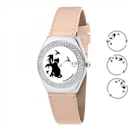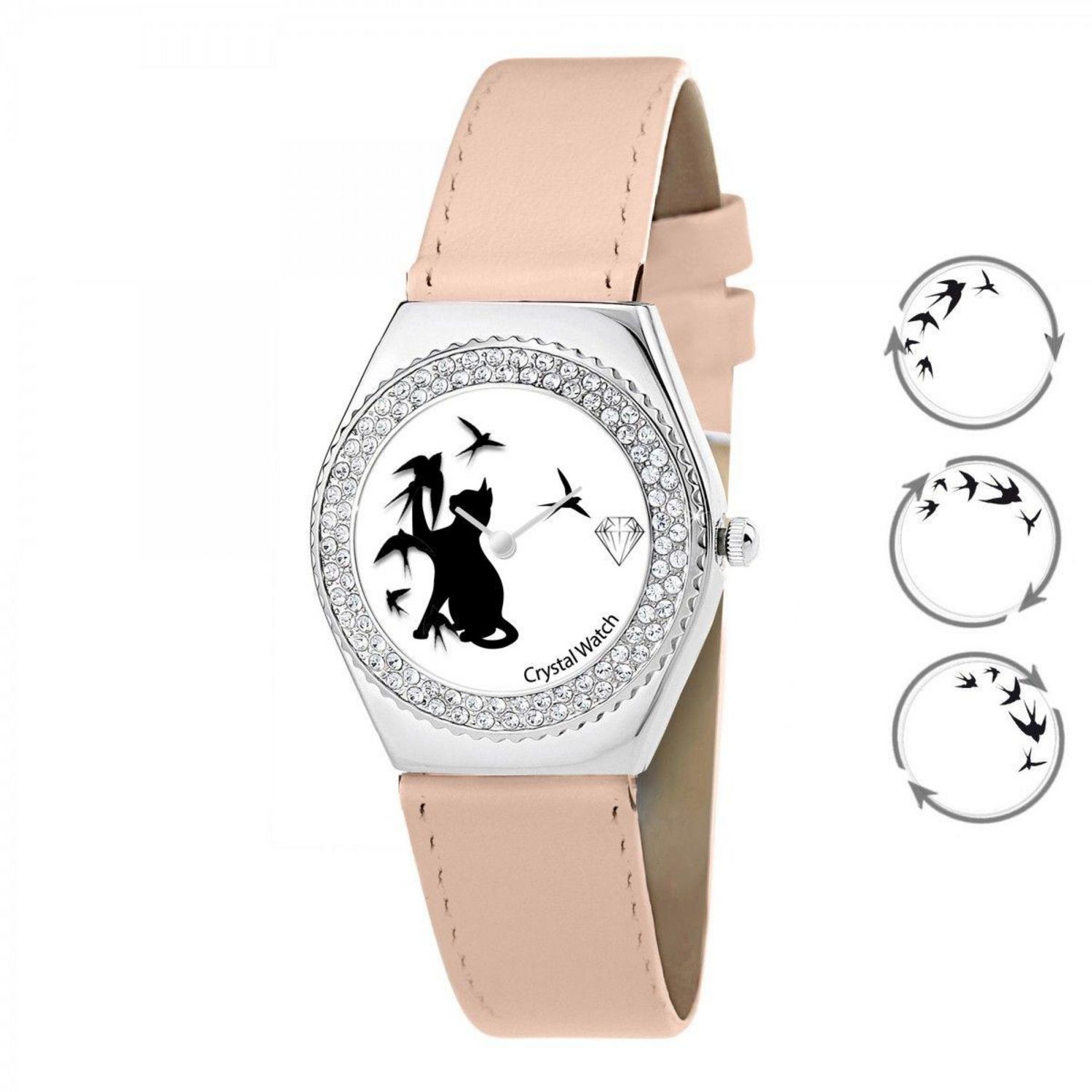 Montre Alysson chat à mouvement tournant SC Crystal ornée de Cristaux scintillants