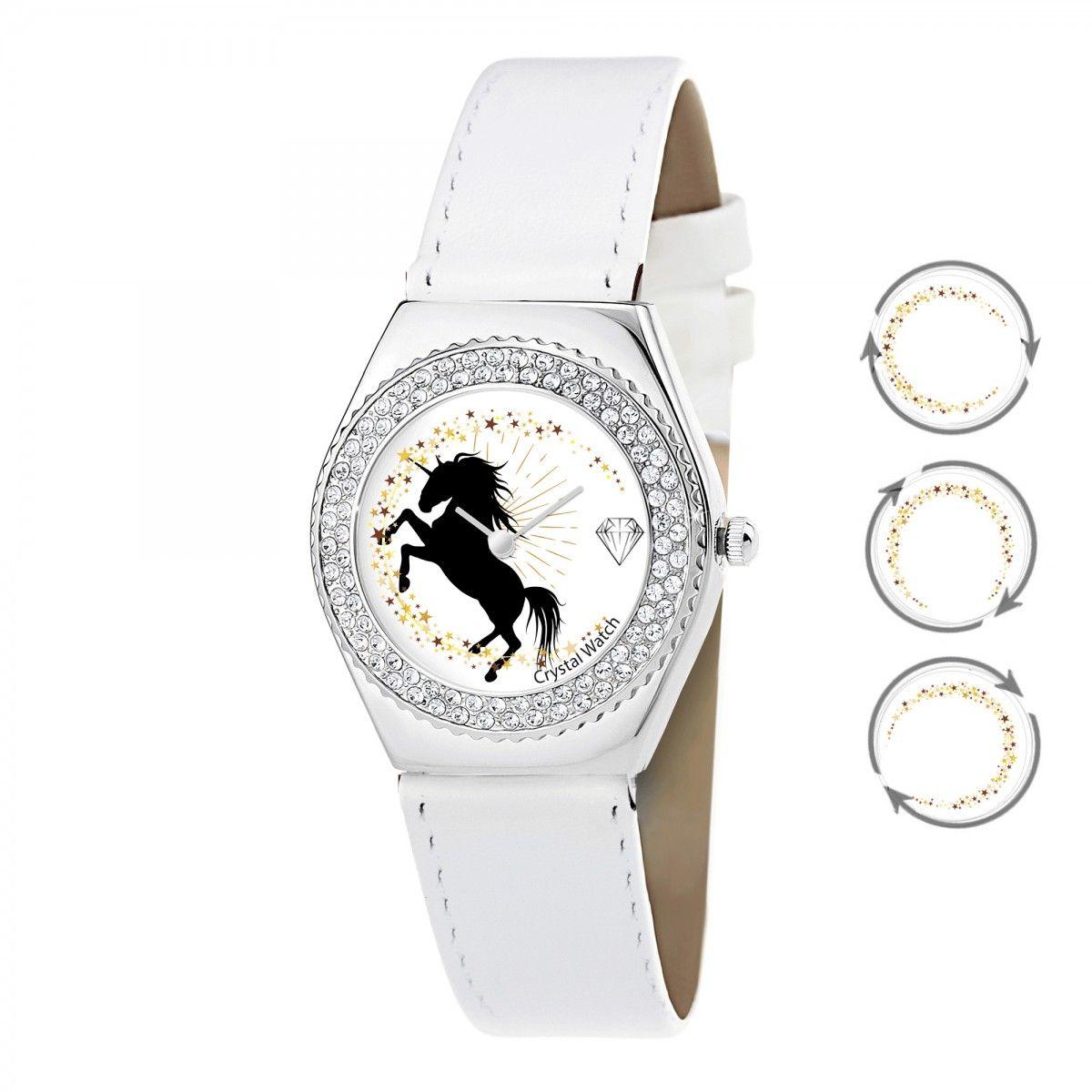 Montre Alysson licorne à mouvement tournant SC Crystal ornée de Cristaux scintillants