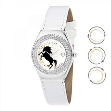 Saupoudrez votre look d'un peu de magie des contes de fée avec cette adorable montre Alysson licorne à mouvement tournant. Agrémenté d'un boîtier en acier inoxydable et d'un bracelet en véritable cuir blanc assorti d'un mouvement quartz haute fiabilité japonais, elle est magnifiée d'un cadran orné d'étincelants 87 Cristaux scintillants, complétée par un mouvement des secondes en forme d'étoiles brillantes tournant autour du cadran. Symbole mystique de l'enchantement et de l'élégance, cette charmante représentation à l'intérieur de la montre en fait un joli cadeau.